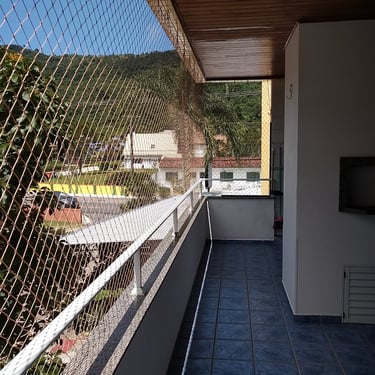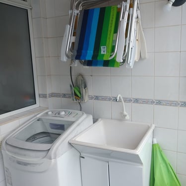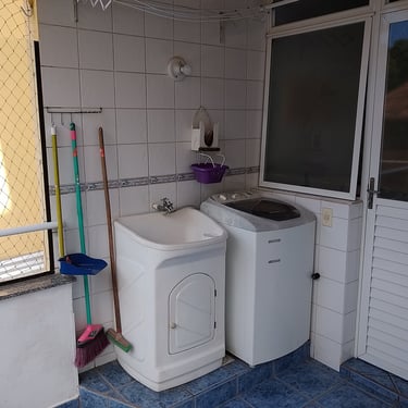 Dispõem de sacada com tela anti-queda, com churrasqueira e rede, área de serviço com máquina de lavar, Smart TV, cozinha completa.