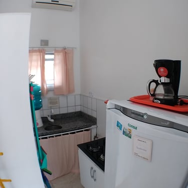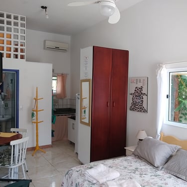 Localizadas no térreo, acomodam até duas pessoas. Possuem tv a cabo, ar condicionado e ventilador de teto, fogão a gás, cafeteira, microondas, equipamentos de praia e guarda-valores.