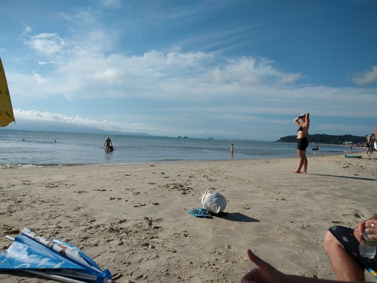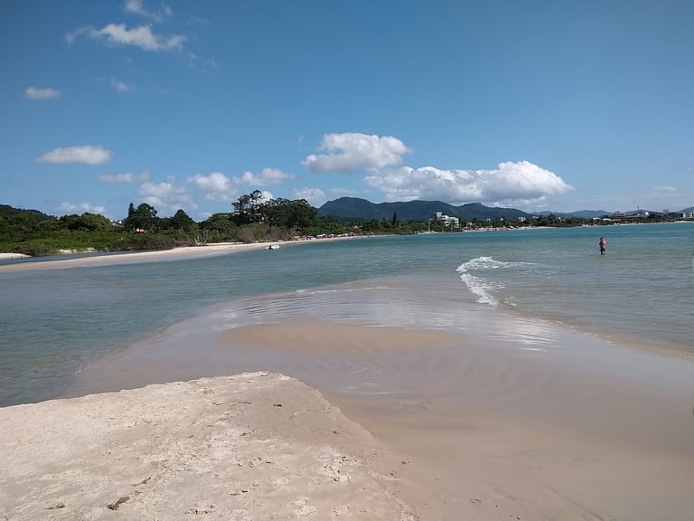 Esta praia de areias brancas e mar calmo, fica entre as conhecidas praias de Canasvieiras e Ponta das Canas, e no caminho da Praia Brava e da Lagoinha.